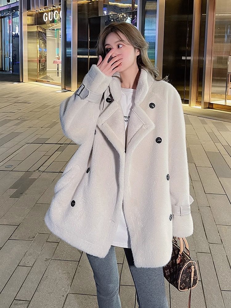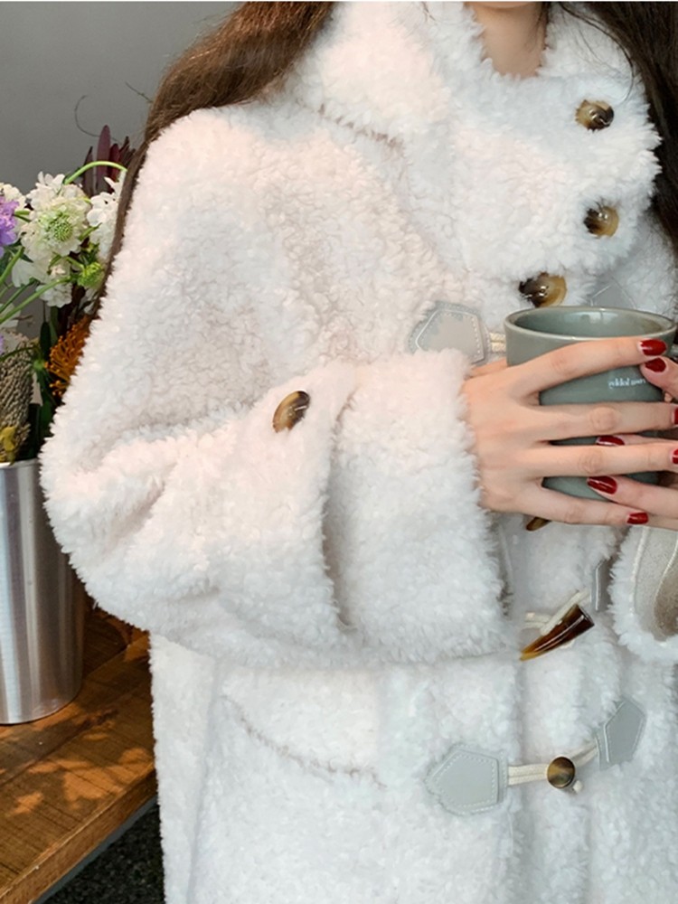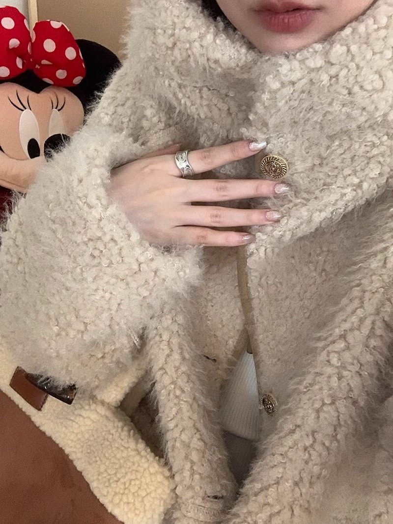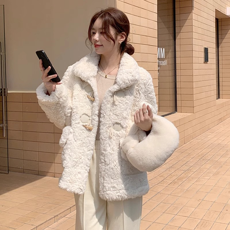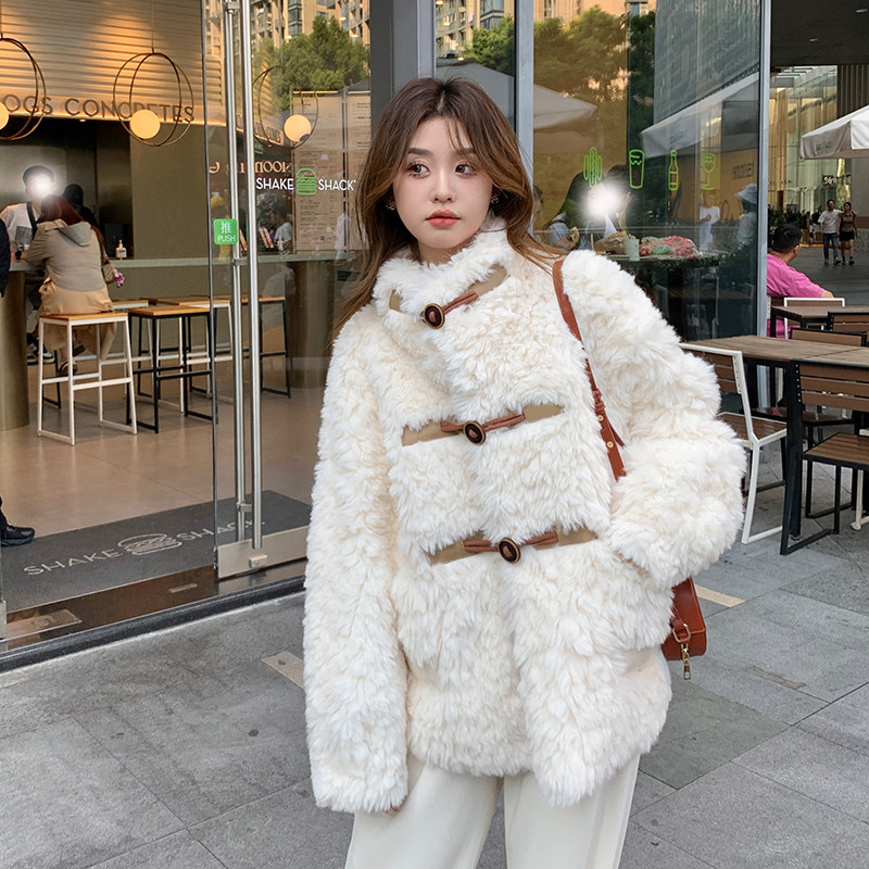 LILY MOST牛角扣反季羊羔毛外套女2023年软糯兔毛皮草宽松毛绒