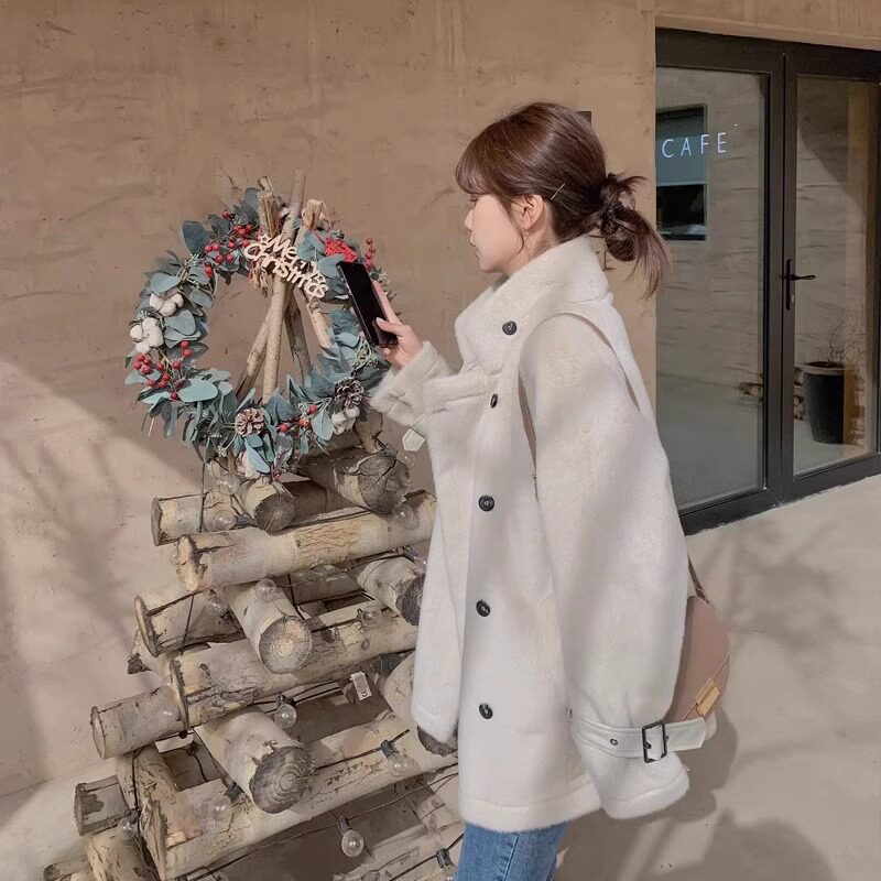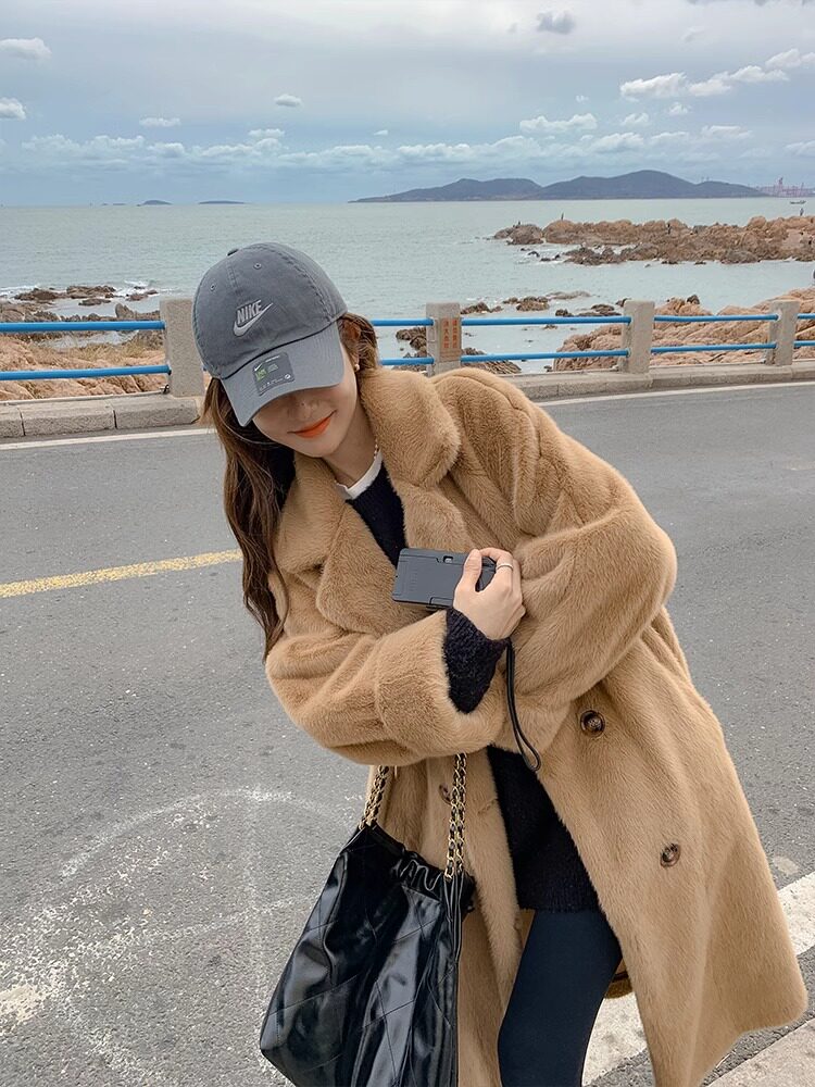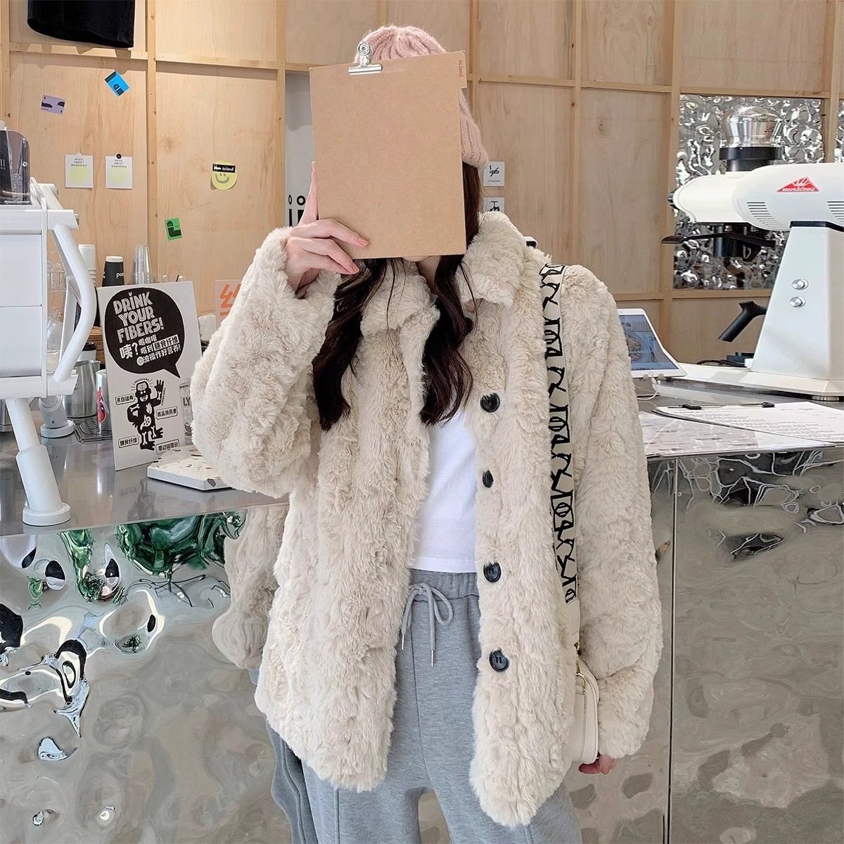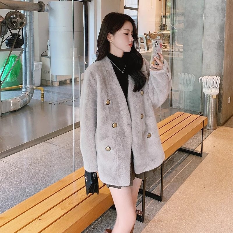 LILY MOST牛角扣反季羊羔毛外套女2023年软糯兔毛皮草宽松毛绒