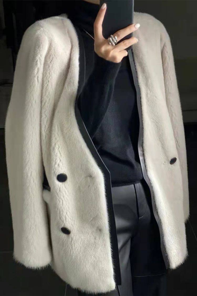 LILY MOST 皮草水貂绒女2023年冬新款V领开衫毛茸茸短外套