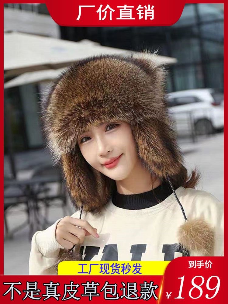 小浣熊护耳帽美洲仿貉子毛雷锋霸王帽冬季保暖男女儿童成人皮草帽