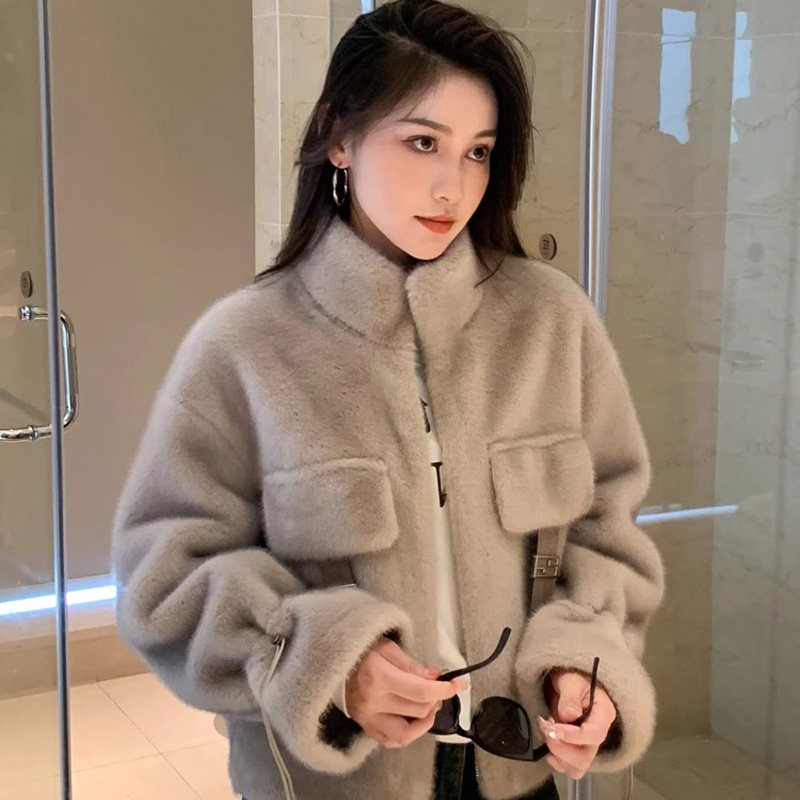 LILY MOST韩版短款水貂毛绒皮草毛毛外套女高级感加厚开衫上衣潮