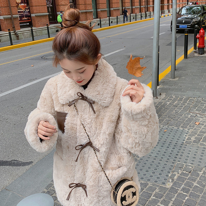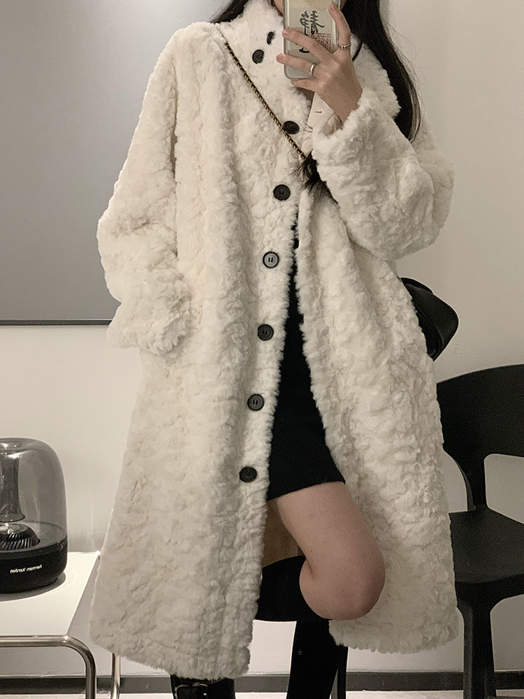 LILY MOST长款羊羔毛外套女冬新款皮草兔毛绒茸加厚牛角扣大衣