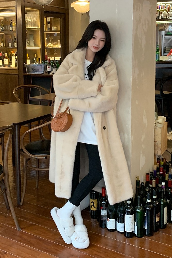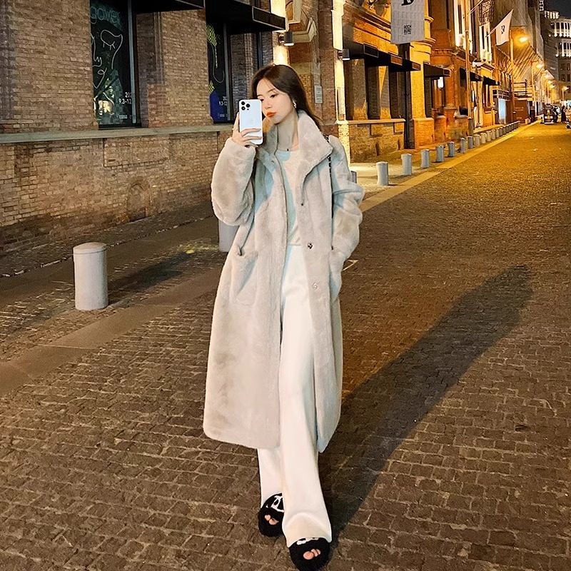 LILY MOST水貂绒长款皮草外套女冬宽松加厚皮毛一体西服领大衣