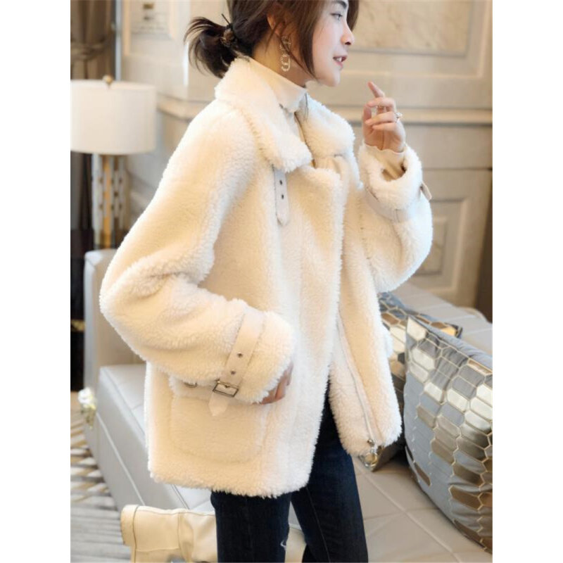 LILY MOST韩版宽松设计感皮草大衣女2023冬季皮毛一体羊羔毛外套
