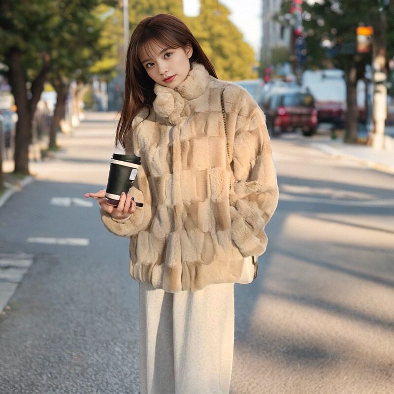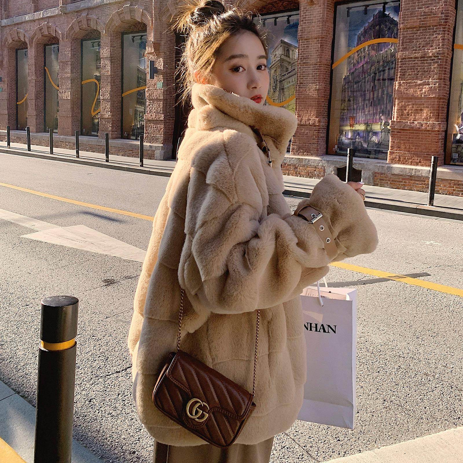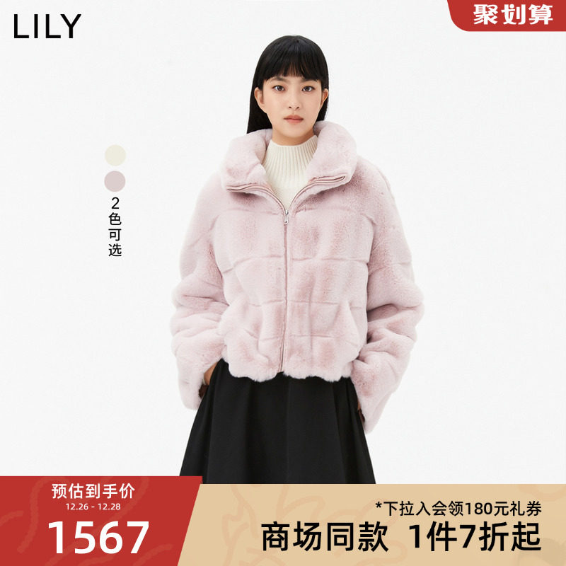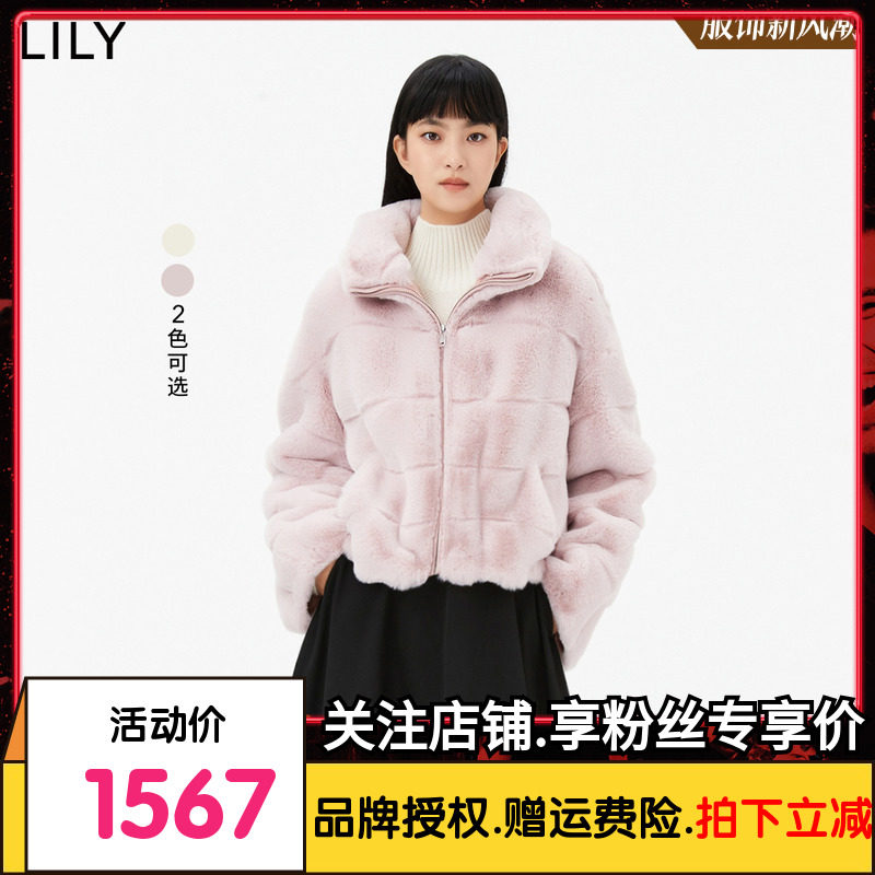 LILY MOST高级感毛茸茸外套女时尚宽松加厚立领雷克斯兔毛皮草