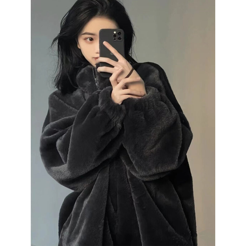 LILY MOST高级感毛茸茸外套女时尚宽松加厚立领獭兔毛皮草