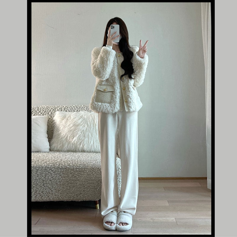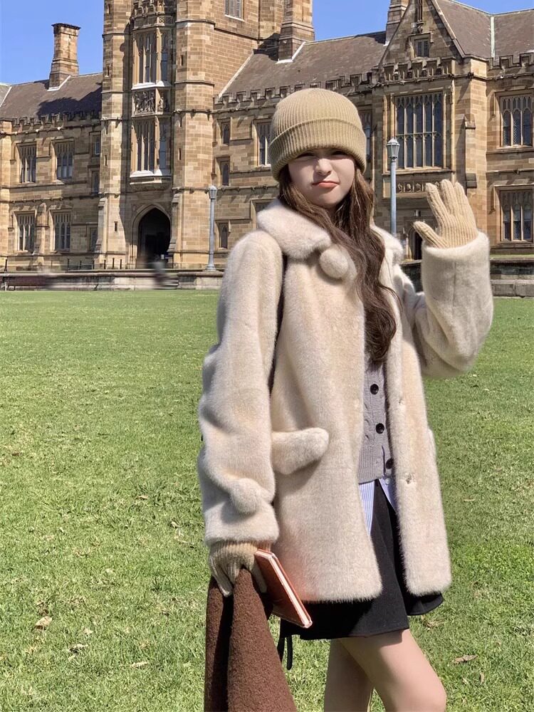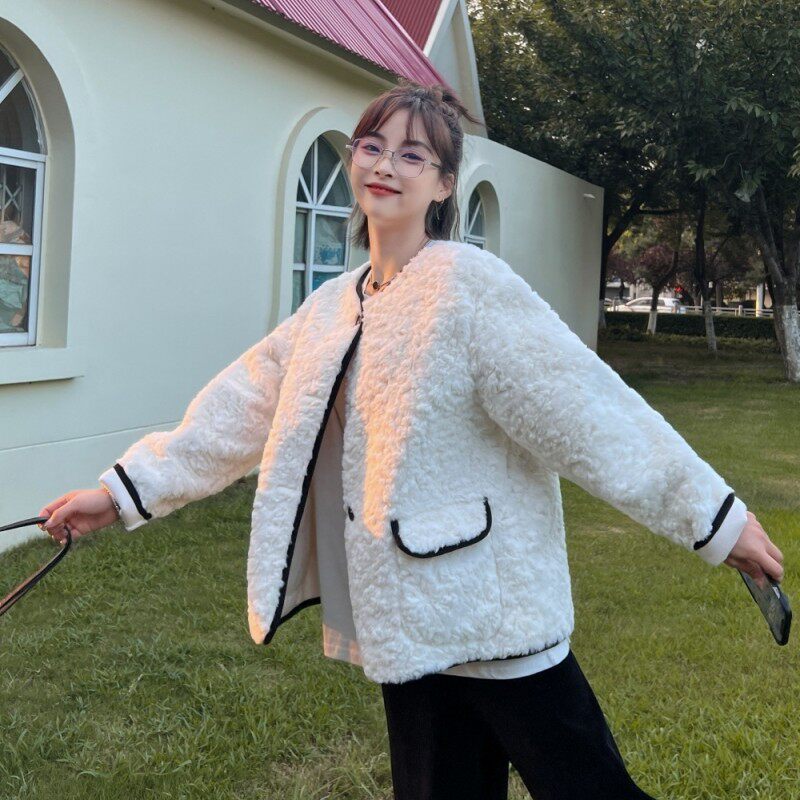 LILY MOST2023冬季新款高级感羊羔毛外套娃娃领毛绒绒皮草上衣女