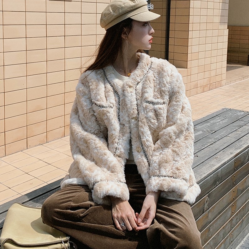 LILY MOST 小香风法式名媛皮草上衣高端轻奢羊羔毛短款外套秋冬款
