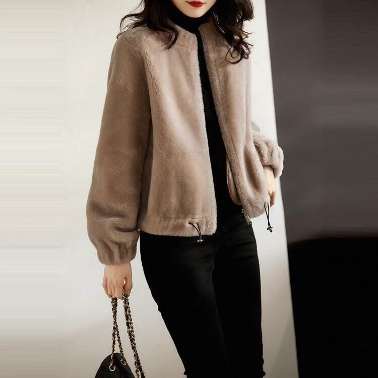 LILY MOST羊羔毛外套女冬季新款皮毛一体短款加厚皮草毛茸茸大衣
