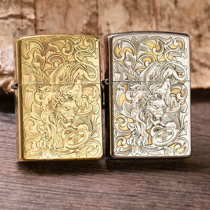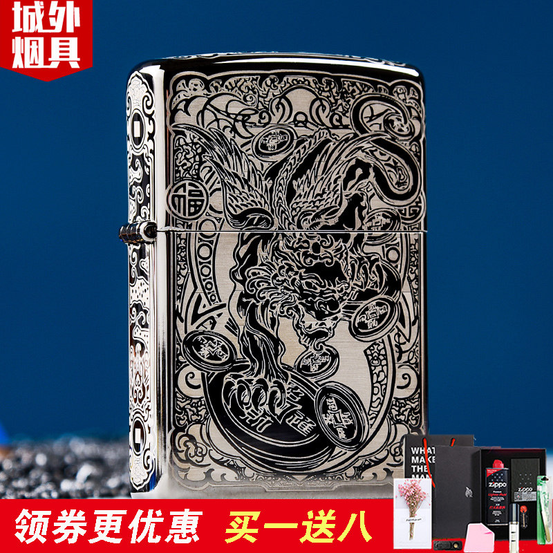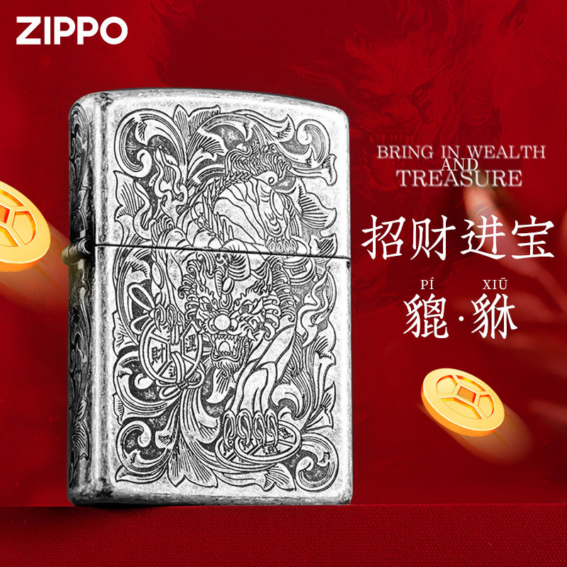 zippo打火机正版五面精雕唐草貔貅zip经典正品男之宝七夕节礼品