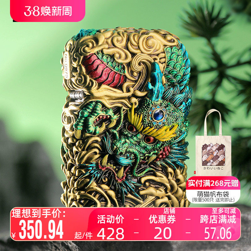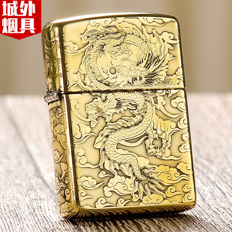 打火机zippo正版黄铜祥云龙之宝正品煤油防风zppo男士限量zipoo