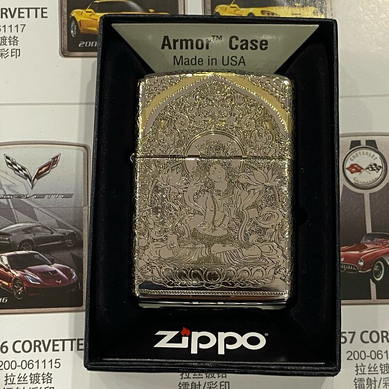 zippo之宝防风打火机正品167盔甲机精雕双色白度母斗战胜佛男礼物