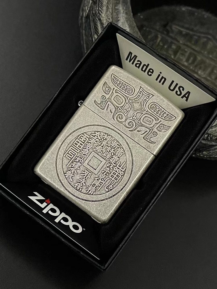 zippo之宝煤油防风打火机正品 古银做旧双面雕刻山鬼花钱男生礼物