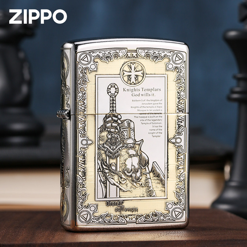 zippo芝宝正版打火机 骑士银色之宝正品防风煤油精雕创意火机男士