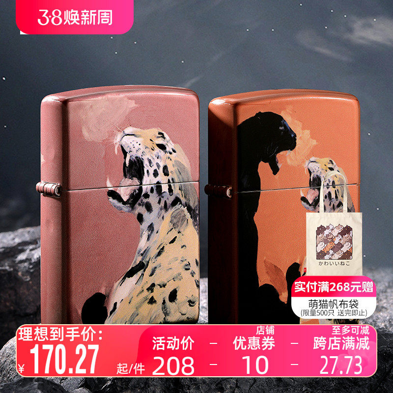 Zippo打火机官方正版正品防风之宝金钱豹磨砂盔甲雕刻男士送礼