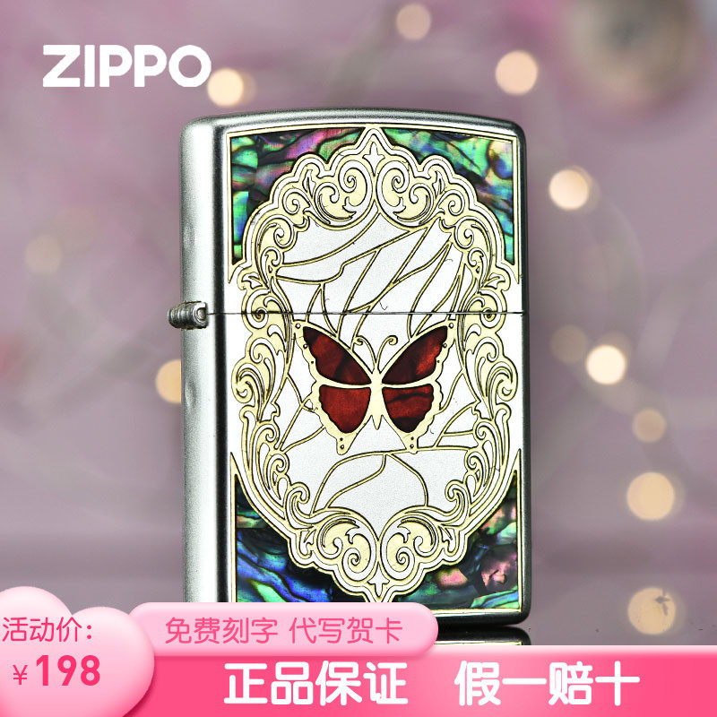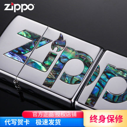 zippo之宝正版打火机 镜面贝壳镶嵌双面大标zp潮牌男士防风火机礼