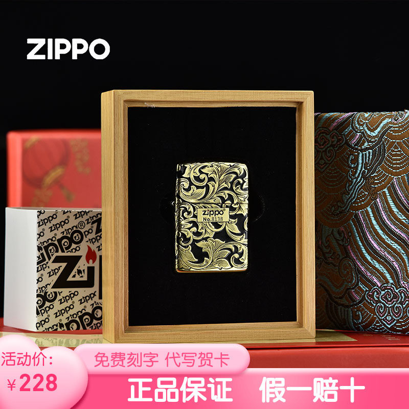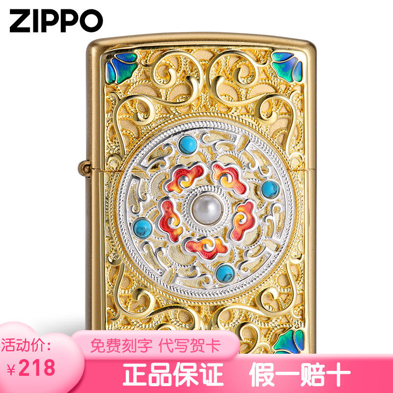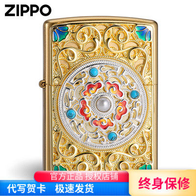 zippo官方正版打火机 金色祥云转盘正品之宝防风煤油送男朋友礼物