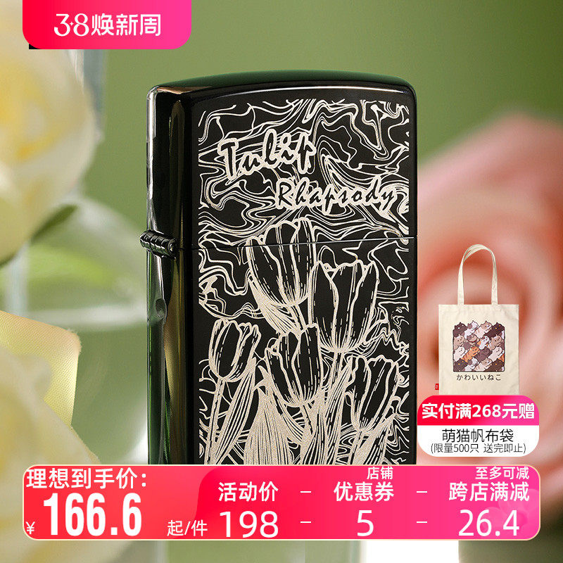 ZIPPO正品之宝煤油防风打火机荆棘花开 黑冰摩登之恋送男友礼物
