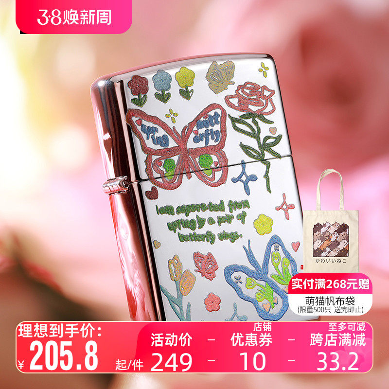 zippo之宝煤油防风打火机正品紫冰镜面双面蝴蝶宋江同款男生礼物