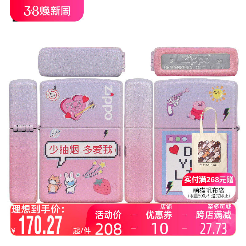 Zippo打火机官方旗舰正品之宝火机少抽烟多爱我表白 送男友礼物