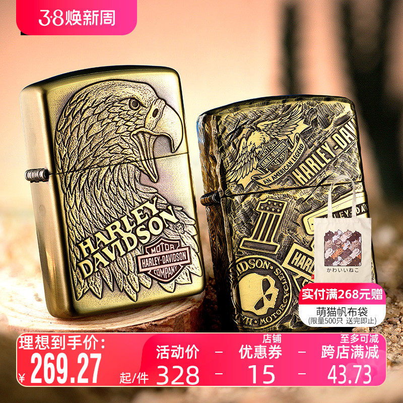 Zippo打火机官方正版防风之宝zppo 哈雷立鹰 盔甲贴章男士送礼