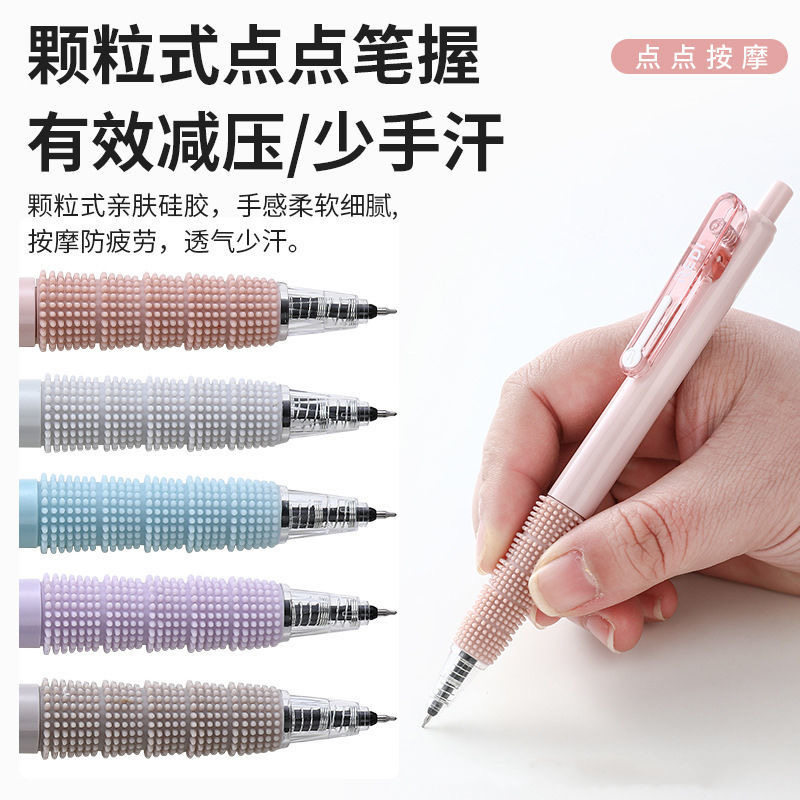 乐普升按动中性笔黑科技颗粒式点点笔握舒适顺滑0.5按动式可换笔