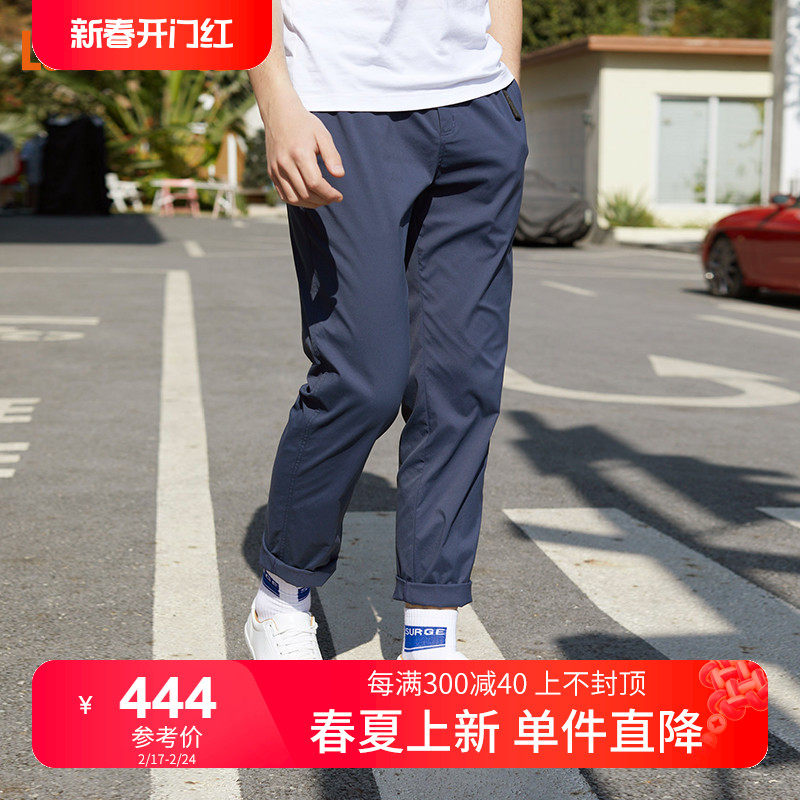 诺诗兰新款男式休闲卫裤百搭运动简约弹力黑色跑步九分裤