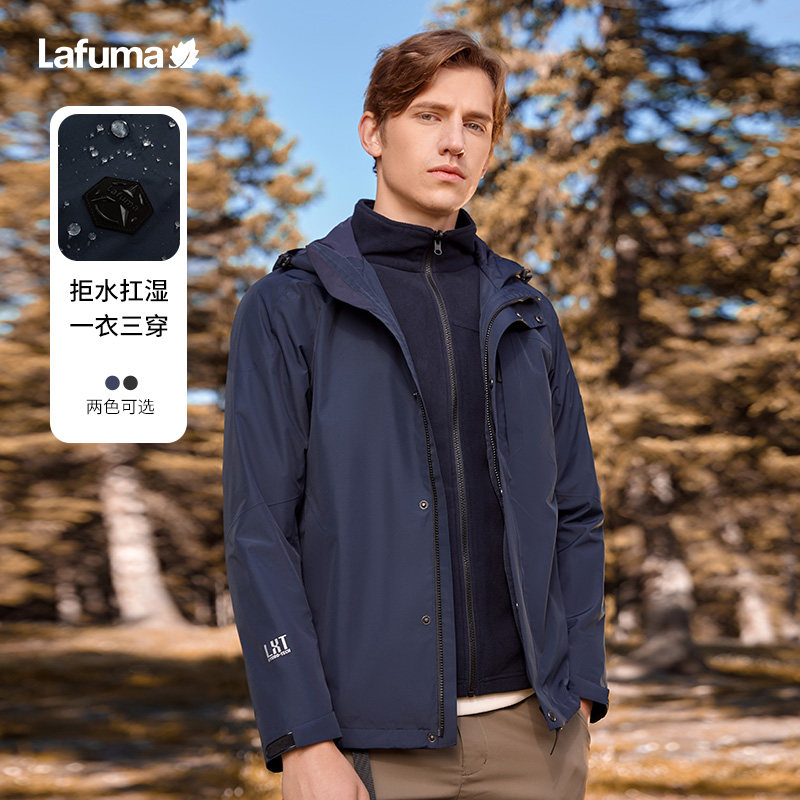 LAFUMA乐飞叶户外新款防泼水防风抓绒三合一连帽夹克男登山外套