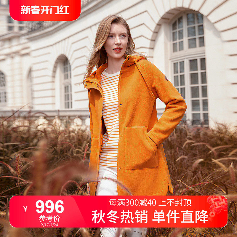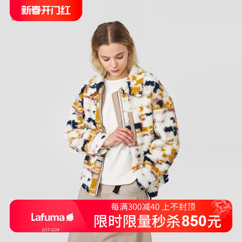 LAFUMA乐飞叶23秋冬户外休闲中长款保暖抓绒女两面毛绒绒夹克外套