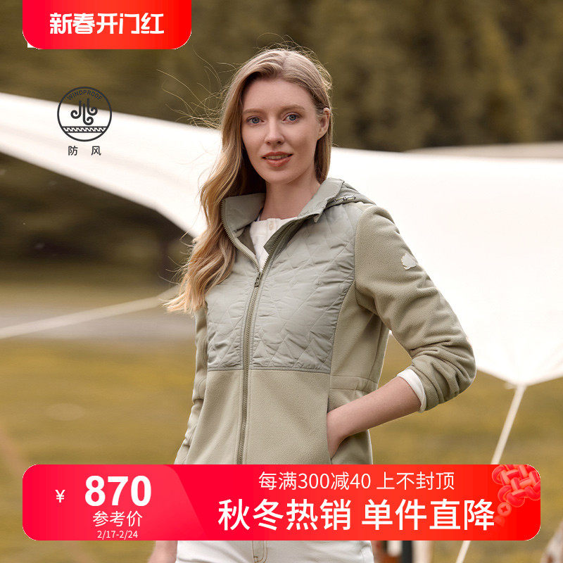LAFUMA乐飞叶户外防风摇粒绒拼接保暖抓绒衣女士可拆卸帽外套夹克