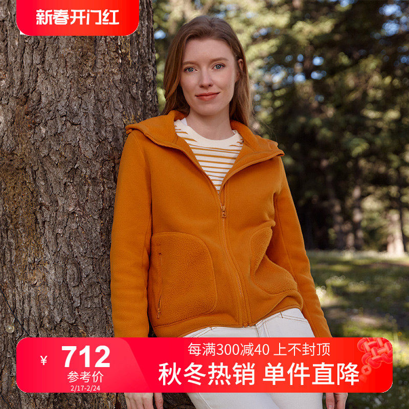 LAFUMA乐飞叶户外秋冬露营连帽抓绒衣轻量保暖颗粒绒女外套夹克