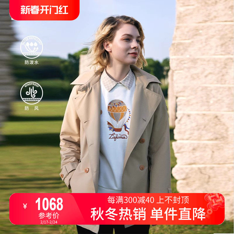 LAFUMA乐飞叶2023秋冬新款户外防水休闲风衣女冲锋夹克显瘦短外套