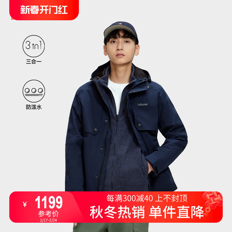 LAFUMA乐飞叶23秋冬新款户外三合一冲锋两件套夹克男抓绒内胆外套
