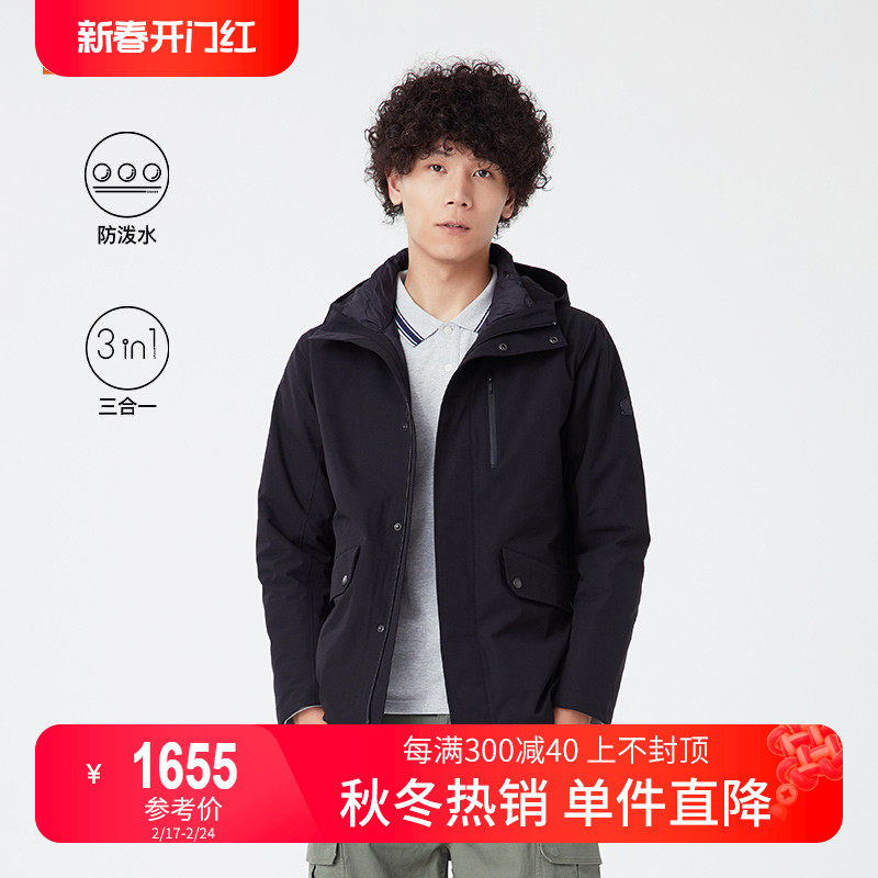 LAFUMA乐飞叶户外防泼水两件套风衣男保暖鹅绒内胆三合一夹克外套