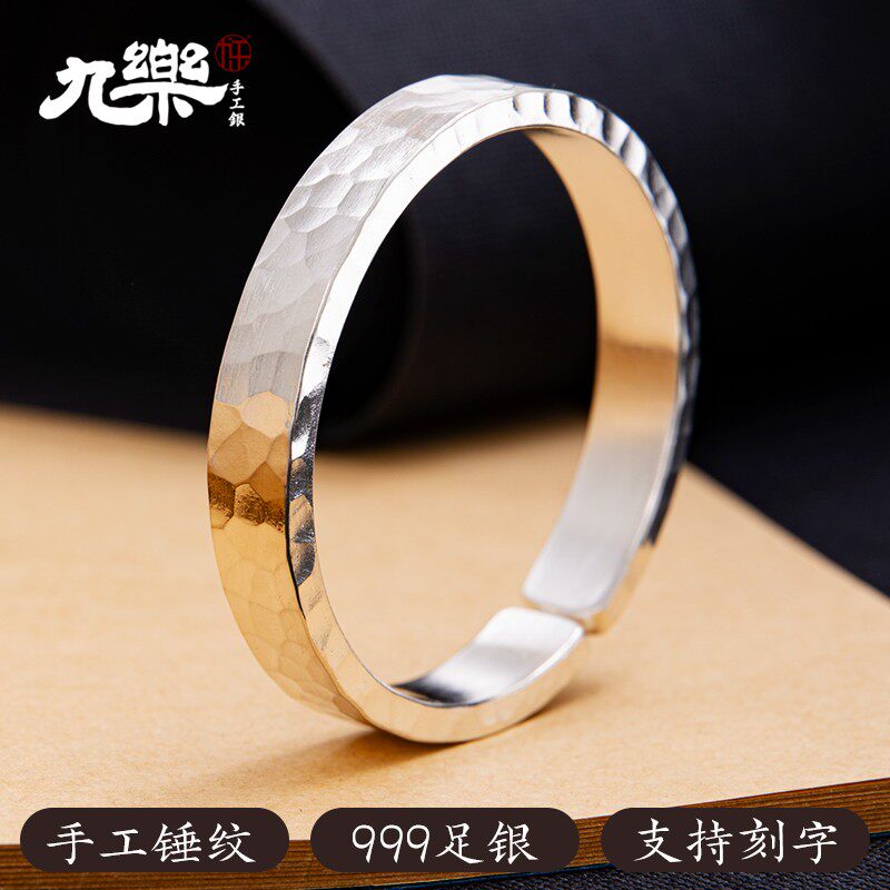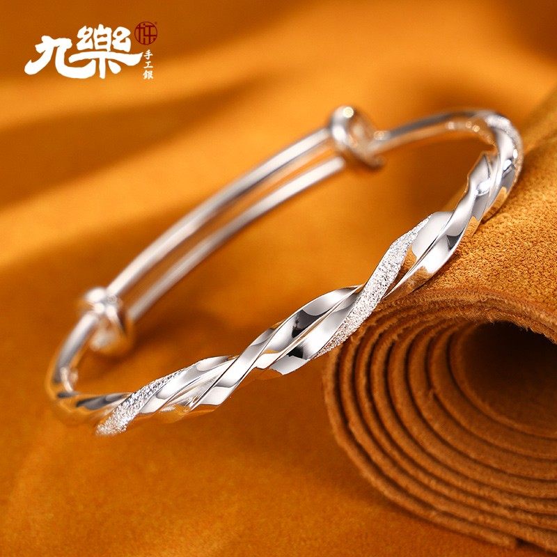 九乐足银999古法传承手镯女年轻款时尚实心网红纯银手环送女友礼