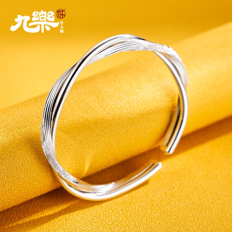 九乐足银999莫比乌斯银手镯女年轻款交叉喷砂纯银镯子送女友礼物