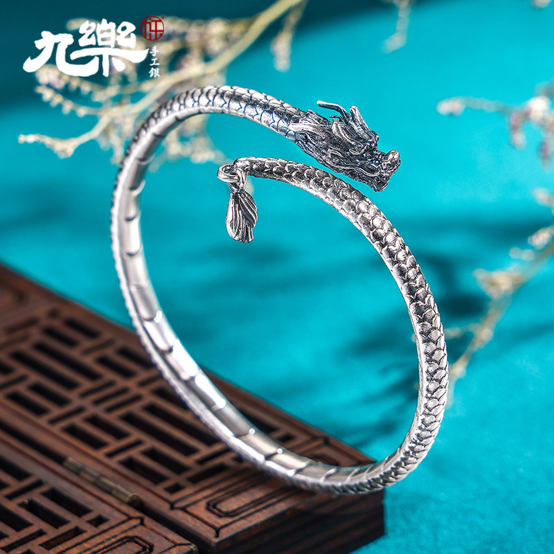 九乐999纯银开口手镯女年轻款平安喜乐古法传承国风手环送女友礼