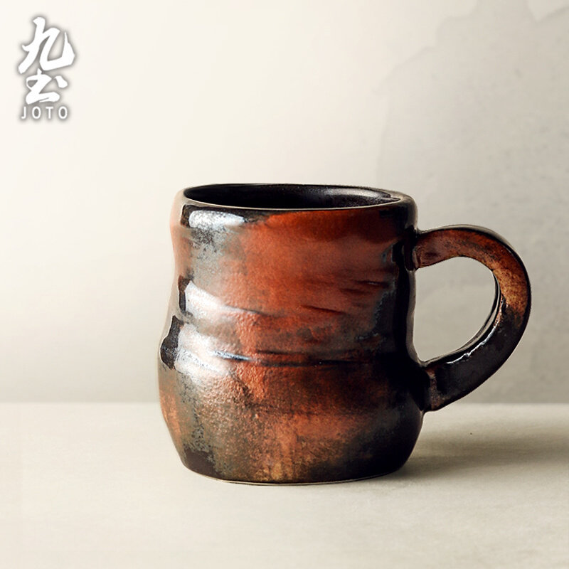 九土日式手工陶瓷咖啡杯复古窑变马克杯简约家用艺术杯手冲咖啡杯