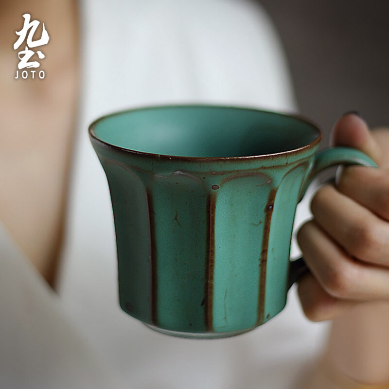 九土手工粗陶咖啡杯手冲复古马克杯网红竖纹个性杯子窑变日式家用