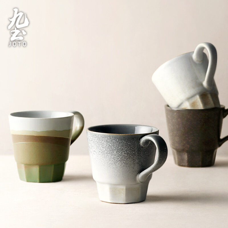 九土日式手工咖啡杯复古窑变马克杯简约创意切面水杯情侣个性家用