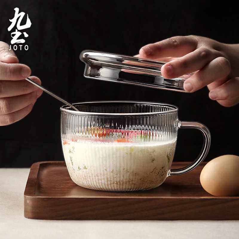 九土燕麦杯早餐杯带把酸奶玻璃杯带盖水杯五谷杂粮麦片牛奶杯