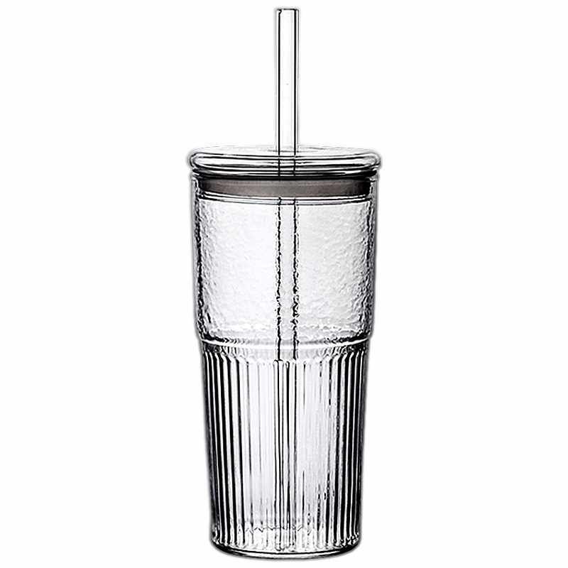 九土吸管杯玻璃水杯咖啡杯办公室高颜值女生奶茶饮料杯耐高温杯子