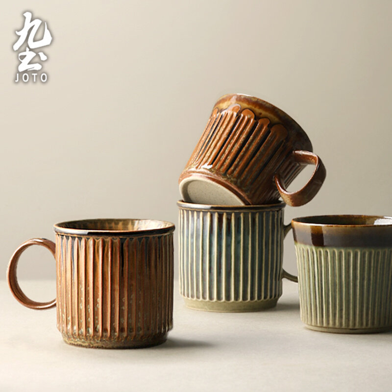 九土日式咖啡杯复古窑变马克杯简约家用水杯创意手工条纹艺术杯子