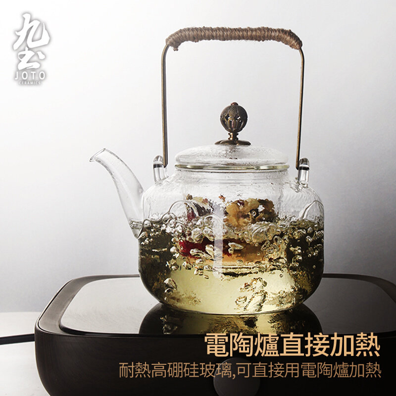 九土电陶炉围炉煮茶泡茶壶玻璃壶耐热玻璃提梁明火蒸煮专用烧水壶