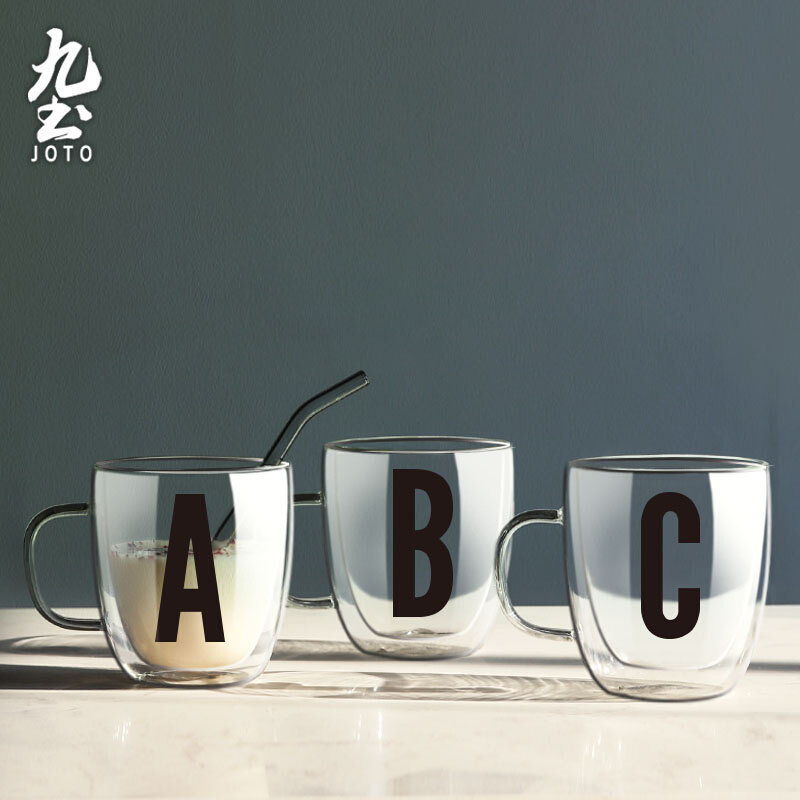 九土加厚双层玻璃情侣茶杯家用咖啡杯耐热个性字母杯子水杯大容量