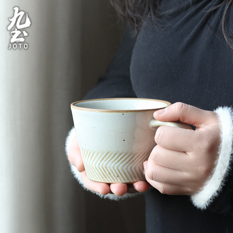 九土陶瓷马克杯办公室水杯大容量白咖啡杯手冲牛奶杯日式复古茶杯