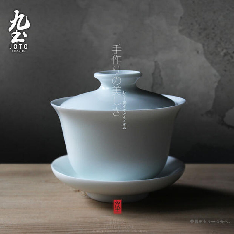 九土手工三才盖碗白瓷三才杯碗带盖茶杯白亮光釉陶瓷茶具水杯禅意