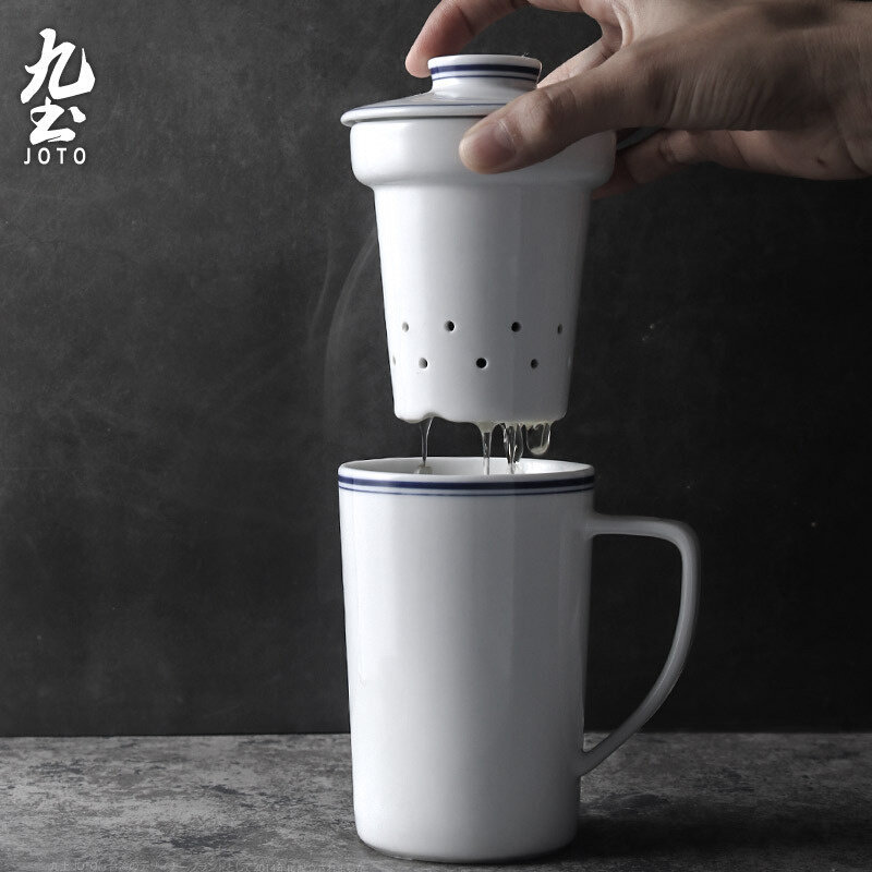 九土泡茶杯陶瓷茶水分离带茶滤内胆个人办公杯会议杯复古功夫茶杯