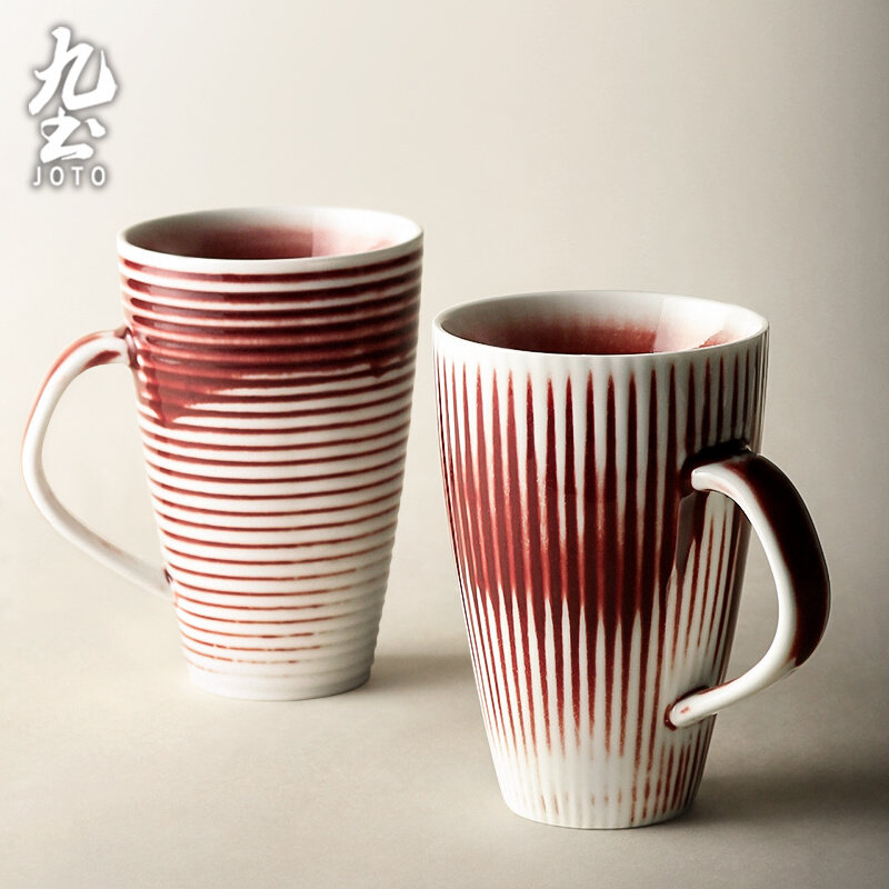 九土日式陶瓷马克杯手工窑变条纹咖啡杯简约家用泡茶杯手冲咖啡杯