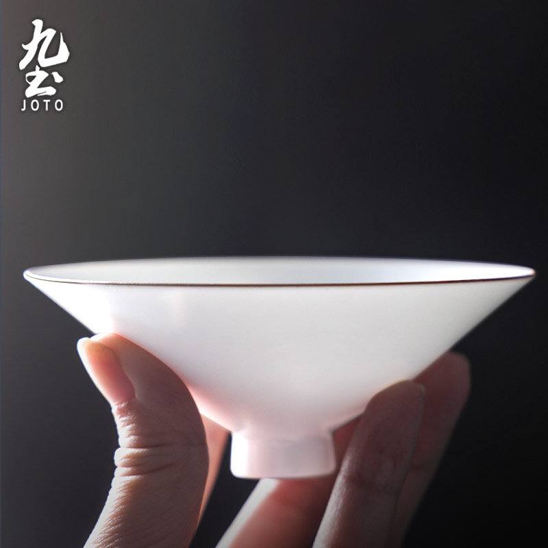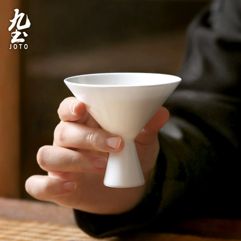 九土手工高脚品茗杯白瓷斗笠茶杯闻香功夫茶具简约主人杯家用单个